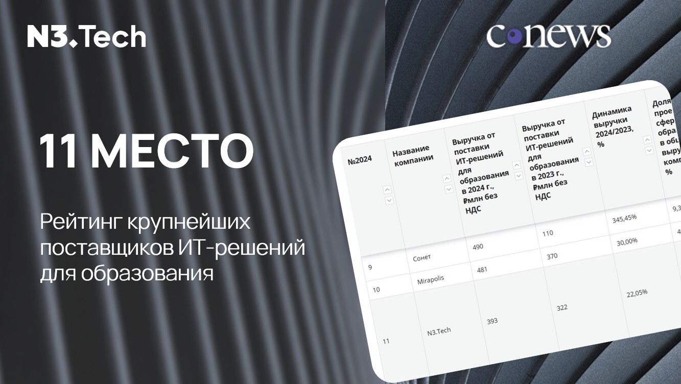 N3.Tech в топе рейтинга CNews Analytics по цифровым решениям для образования